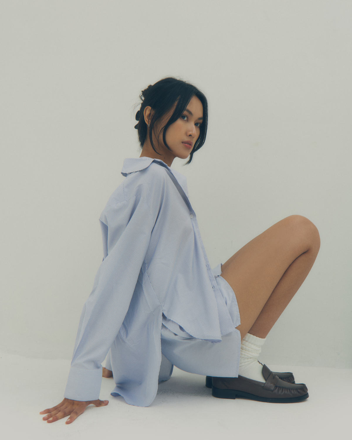 Introducing our irresistibly soft and oversized button-down, designed just for you. Wear it effortlessly over our Poppy short for a relaxed vibe or tuck it neatly into our Mila trousers for a polished look. And yes, it pairs perfectly with your favorite denim.