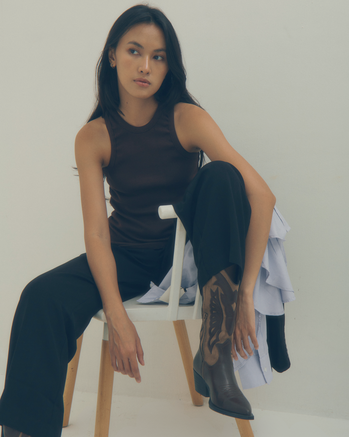 Designed with a high neckline and flattering silhouette, the Roxy tank can effortlessly transition from casual to elevated. Perfect for powering through your workday, tackling errands, or keeping your date night ensemble simple.